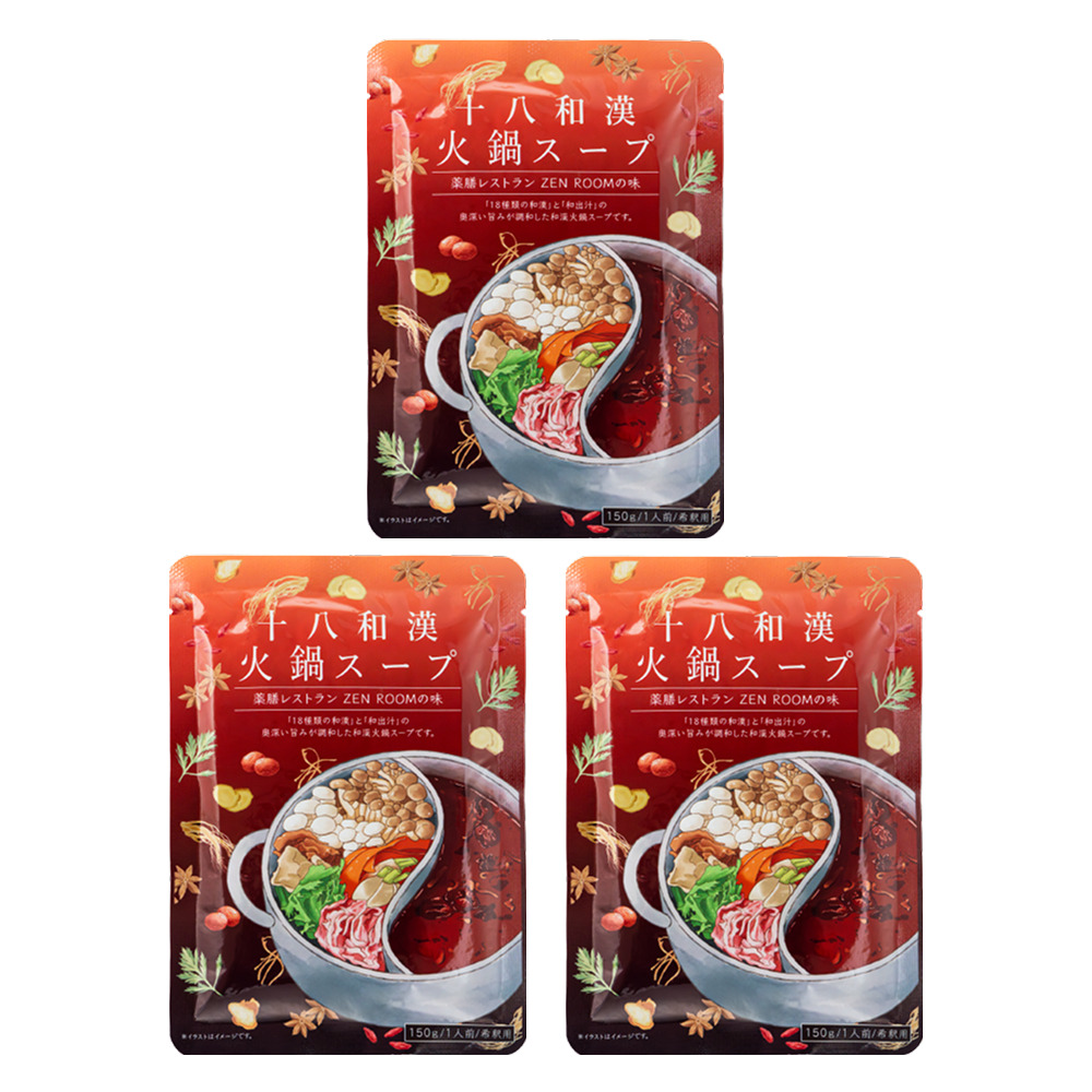 【 お得セット ・ 21.9 % OFF 】 十八和漢 火鍋スープ150ml (1~1.5人前・希釈可) × 3袋 ※レトルト無添加 『花椒香る麻辣醤1瓶 + 和漢6種セット1つ』