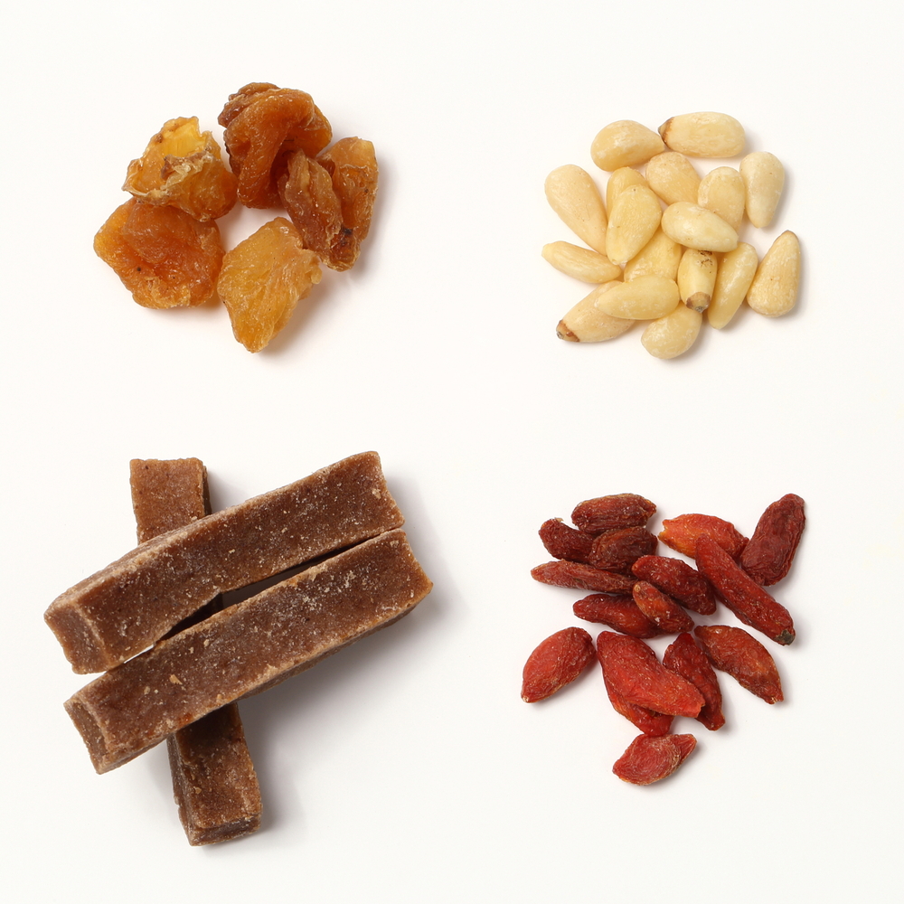 | 原材料・成分 | 山査子糖、クコの実、龍眼、松の実 |